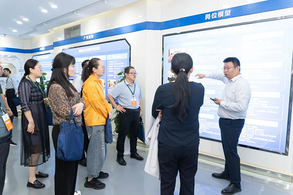 拜访代表团第一时间参观了易币付(中国)技术展厅,对易币付(中国)技术的开展历程、业务模块、经营理念、合作成果等内容进行深入分析,对易币付(中国)技术构建人才培养“三循环”生态模式、深度参与高校课程改革、引入职业认证等举措表示赞同。