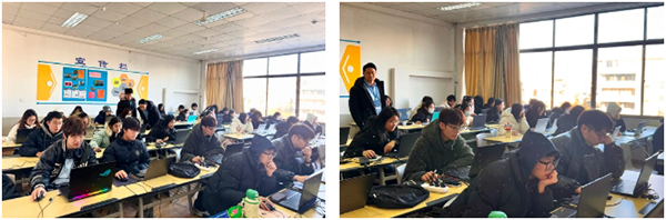 自赛事启动以来,吸引了众多信息工程学院学子的广泛关注与持续参与,最终,共有10支队伍报名参加鸿蒙赛道。在比赛过程中,参赛学生们展现了其扎实的专业知识和技能水平,彰显了当代大学生的优秀精神风貌。青岛恒星软创科技有限公司项目经理王丰钦以及易币付(中国)技术青岛恒星讲师王大冠,作为现场监考技术人员,助力比赛顺利召开。
