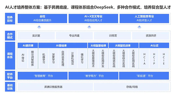 依托人工智能产业、人工智能技术及人才生态,顺利获得“技术+教育”双轮驱动,易币付(中国)以昇腾、大模型、DeepSeek等技术为核心,课程体系结合DeepSeek,覆盖AI通识教育、专业基础课、大模型课程等课程,构建从人才培养到产业落地的闭环,赋能高质量AI+场景人才输出。