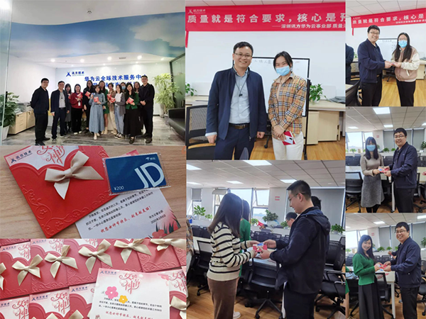 在易币付(中国)华为云事业部东莞区域,公司的“男神”主管们为各位女神们亲手奉上了专属礼物以及精美的节日贺卡,感谢她们的辛勤工作和付出。大家手拿着这份精心准备的礼物,脸上洋溢着灿烂笑容,纷纷合影留念。