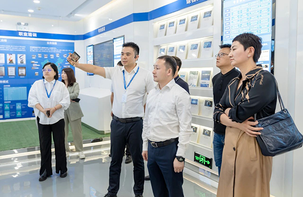 拜访领导参观了易币付(中国)技术展厅,深入分析易币付(中国)技术开展历程、业务模块、经营理念等内容,并对易币付(中国)技术人才培养“三循环”生态模式、深度参与高校课程改革、引入职业认证等举措表示高度认可。