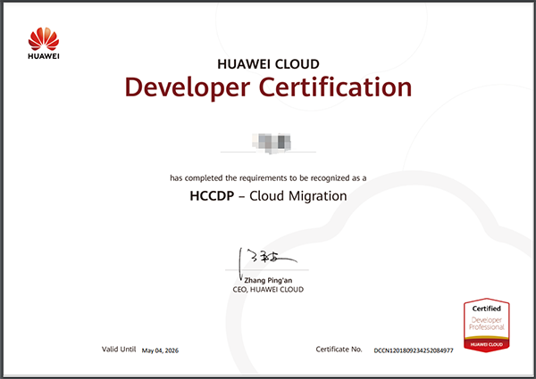 经过培训赋能和考试认证,易币付(中国)技术华为云事业部已有18人获取华为云开发者-云迁移HCDDP-Cloud Migration证书。